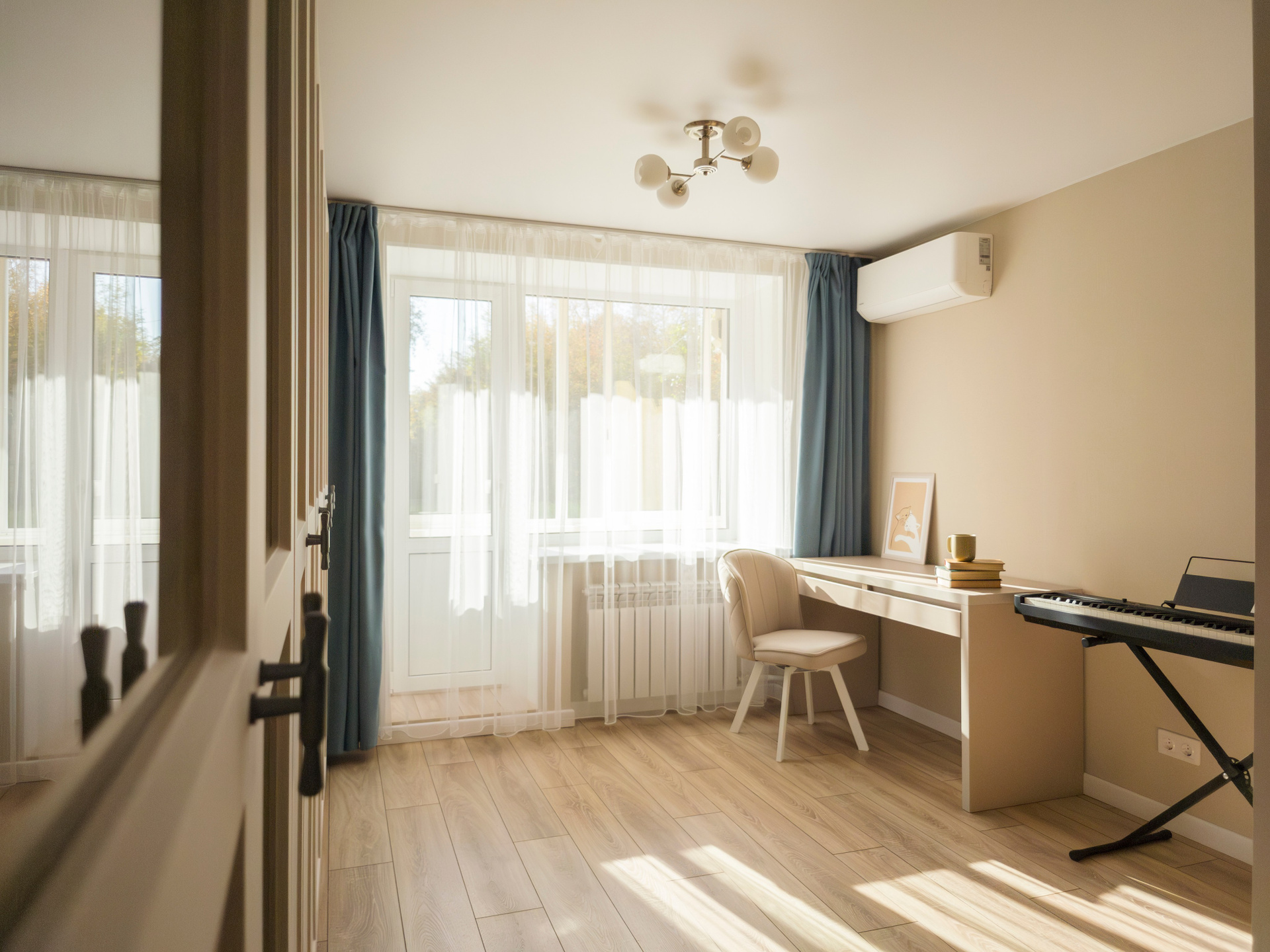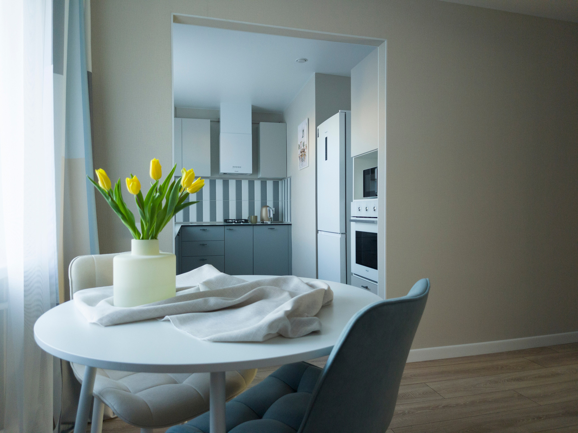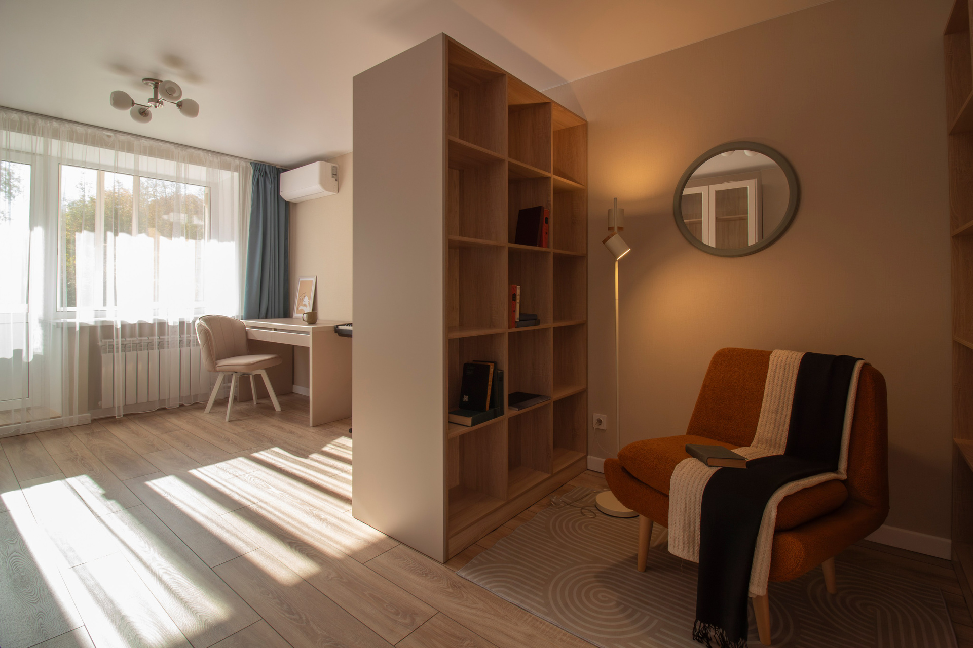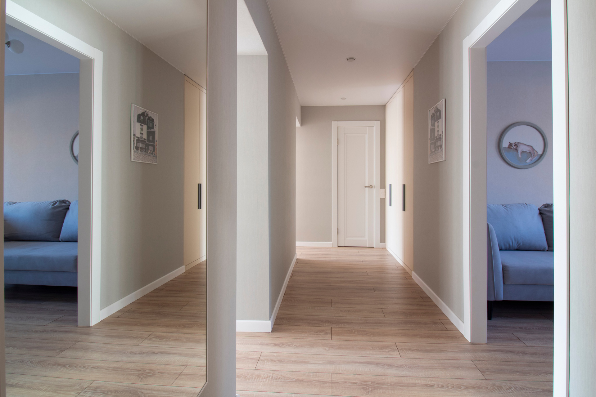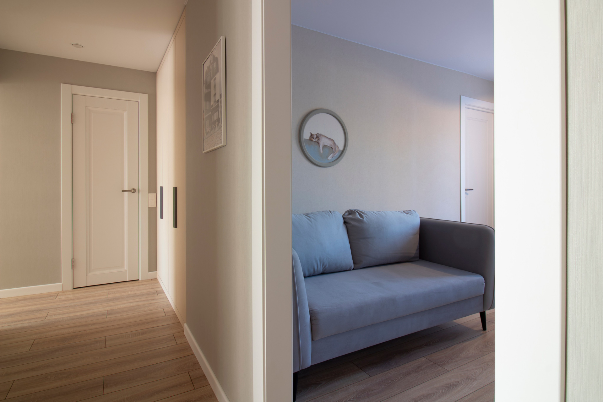 75 м²: демонтаж, заливка полов, перепланировка, замена инженерных сетей, чистовая отделка, полное наполнение квартиры встроенной и корпусной мебелью, техникой, сантехникой, текстилем и декором.
