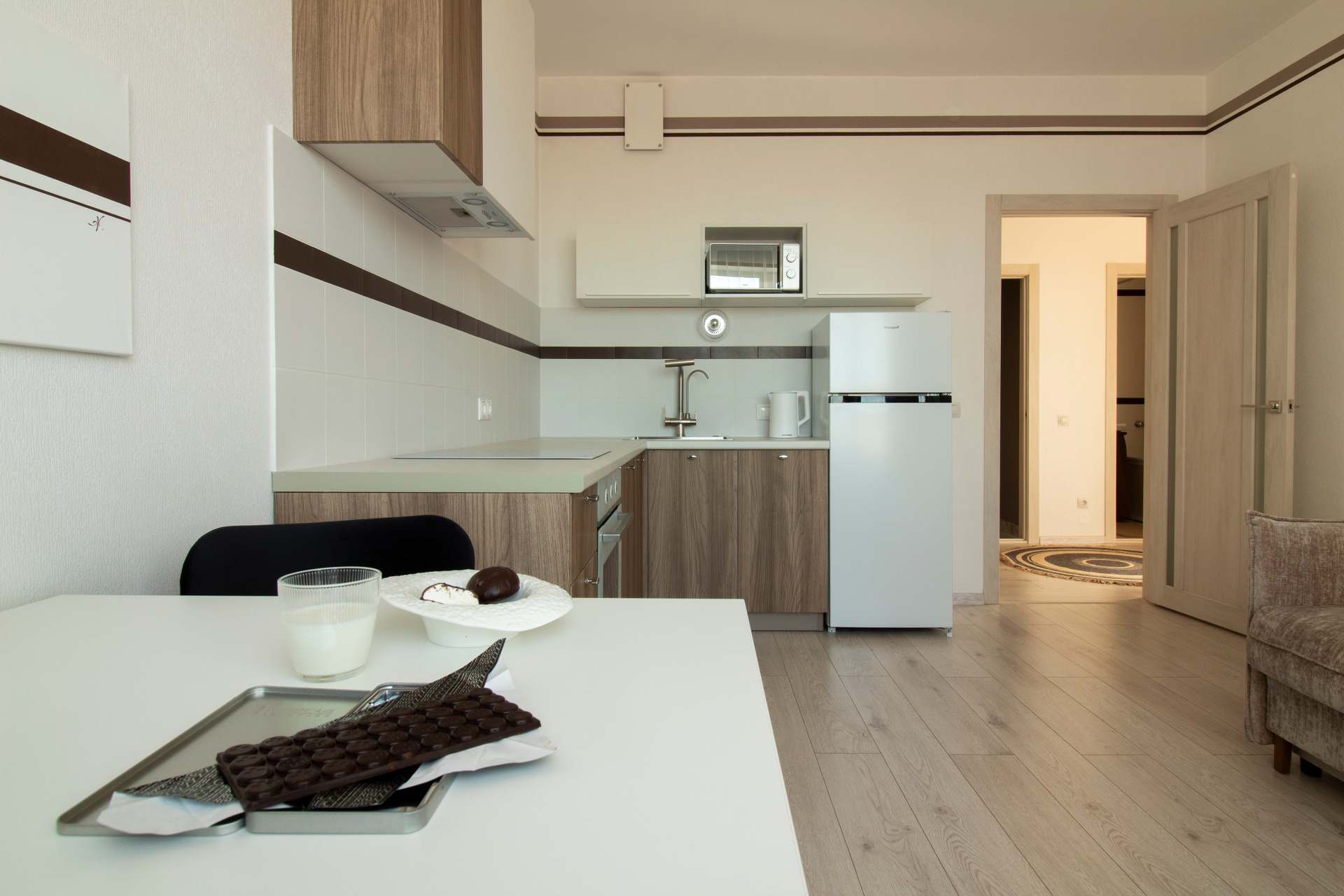 Мы: подготовили квартиру к сдаче в долгосрочную аренду, выделив её среди конкурентов геометричными формами и авангардными деталями, выполнили ремонт санузла, увязали каждое помещение квартиры в единый концепт. Получилось утно и с изюминкой.